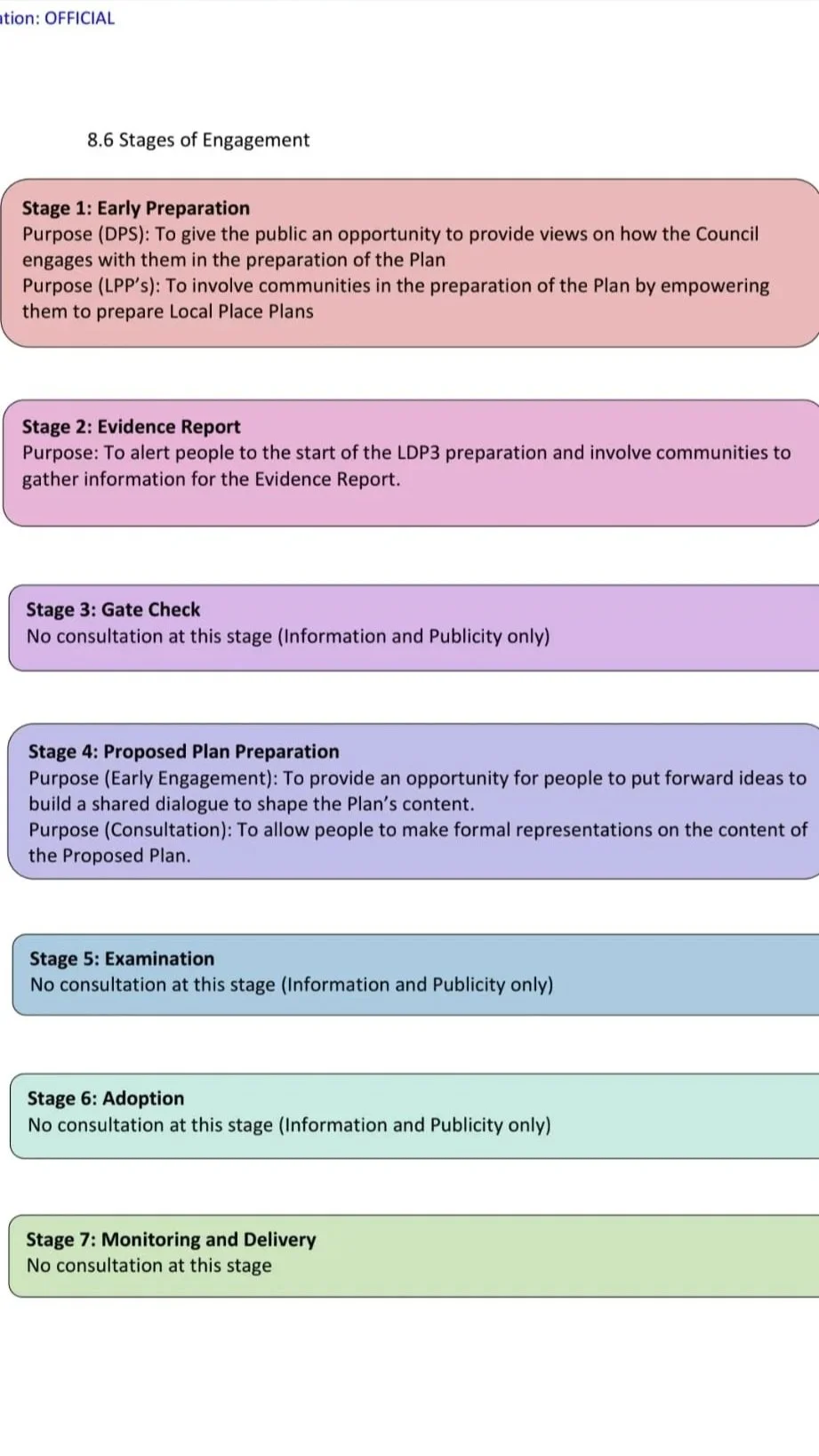 When creating LDP3 the Council must have regard for Local Place Plans that communities, including Cove & Kilcreggan, have produced. However, Argyll & Bute Council is keen to further engage with individuals, community representatives, businesses, public groups to develop the plan. This involves the following key stages: